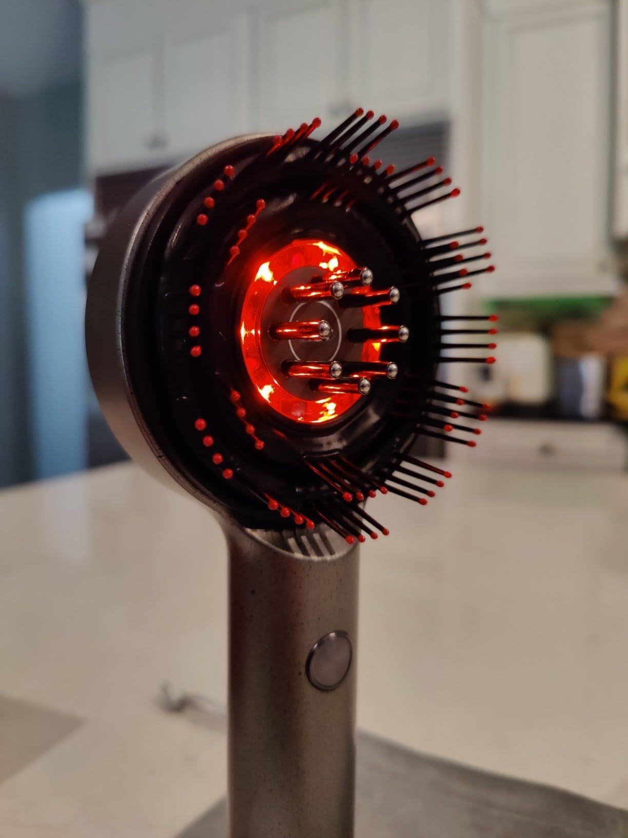 - * 【Accurate Oil Applicator】With a 3ml serum cabin in the middle of the brush,the Light Therapy Brush can help you apply essential oil evenly and easily while massaging your scalp. The direct touch from the shiatsu hands-free massage comb minimizes the waste of essential oils and prevents them from spreading elsewhere.