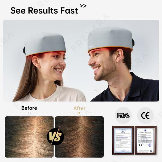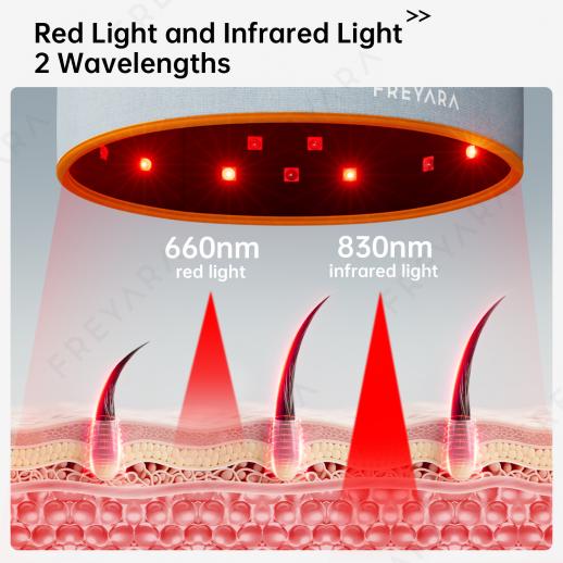 - * 【Dual-Wavelength Light Therapy (660nm & 830nm)】Featuring a combination of red light (660nm) and infrared light (830nm), this hat is equipped with 120 LED beads (60 red light + 60 infrared) to target different areas effectively. It promotes hair growth, repairs damaged hair follicles, and supports brain cell metabolism and relaxation.
