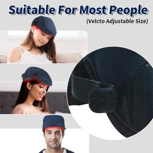 • * 【Comfortable, Adjustable Fit for Consistent Use】Ensure a perfect, comfortable fit for effective treatment every time. Made with skin-friendly materials and featuring an adjustable Velcro strap, the cap fits most head sizes securely and comfortably, making it easy to incorporate into your regular wellness routine.