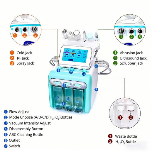 Professional 6-in-1 Hydro Aqua Peeling Machine, Micro Dermabrasion, BIO Face Lifting, Hydrating & Hydro Oxygen Jet for Skin Management & Beauty Care