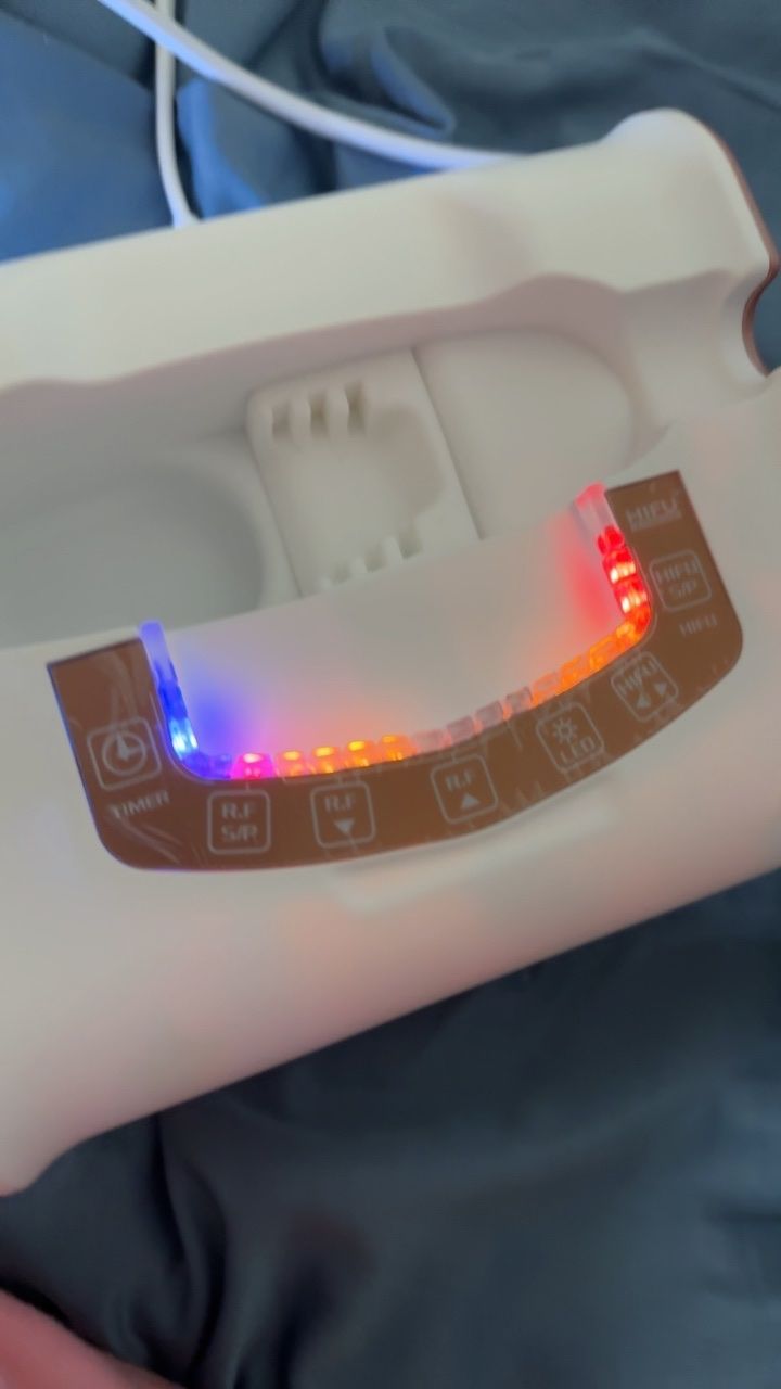 During sessions, the high-intensity focused ultrasound delivers a noticeable, yet tolerable warmth deep beneath the skin—especially along my jawline and cheek area. It’s not painful, but feels like a precise internal lift. The RF mode adds a pleasant heating sensation that’s soothing and relaxing on the surface.