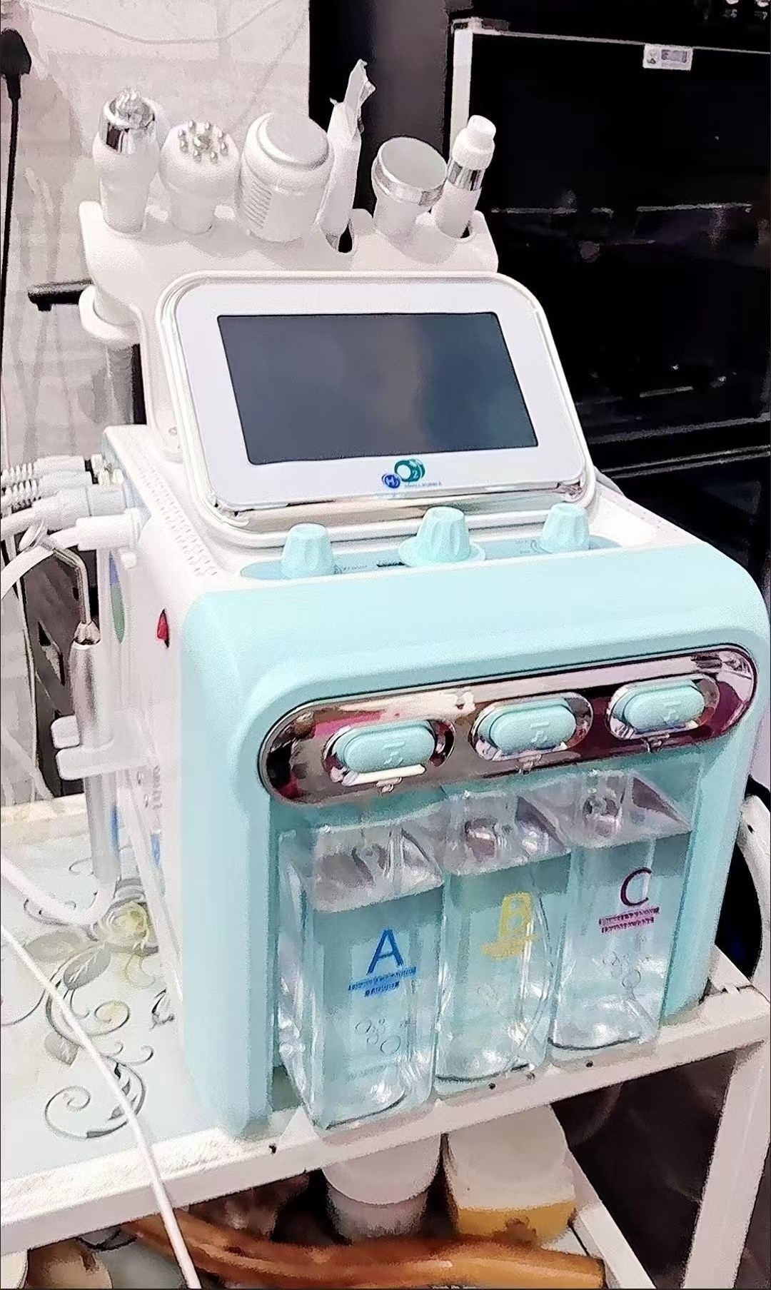 3.Input solution inside A.B.C bottles,input pure water inside D bottle. 4.Connect power cord to the power socket, switch on.