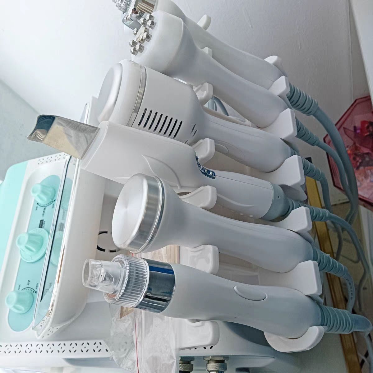 Ultrasound: apply cream or essence on the skin. Start intensity from 3, Press Start on the system or press the button on the handle to start treatment. Recommend about 8mins.