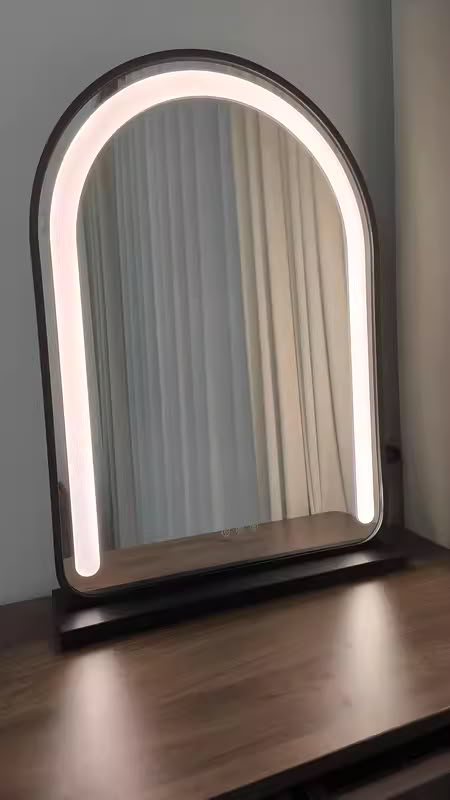 50*70cm Large Arched Vanity Mirror with LED Strip, 360 Rotation, 3 Light Mode Touch, Dimmable Brightness, Plug in to use, Silver Stand