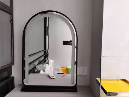 Love the mirror! It was packaged very well and didn't require any assembly. The LED lights are super easy to adjust to three different levels with the tap of a finger. I set up the mirror using the floor stand which is retractable and removable when attached to the wall. It definitely produces a high definition image. The frame of the mirror is strong and sturdy. There are slots on the back for attaching it to a wall or behind a door. Mounting hardware was kindly included.
